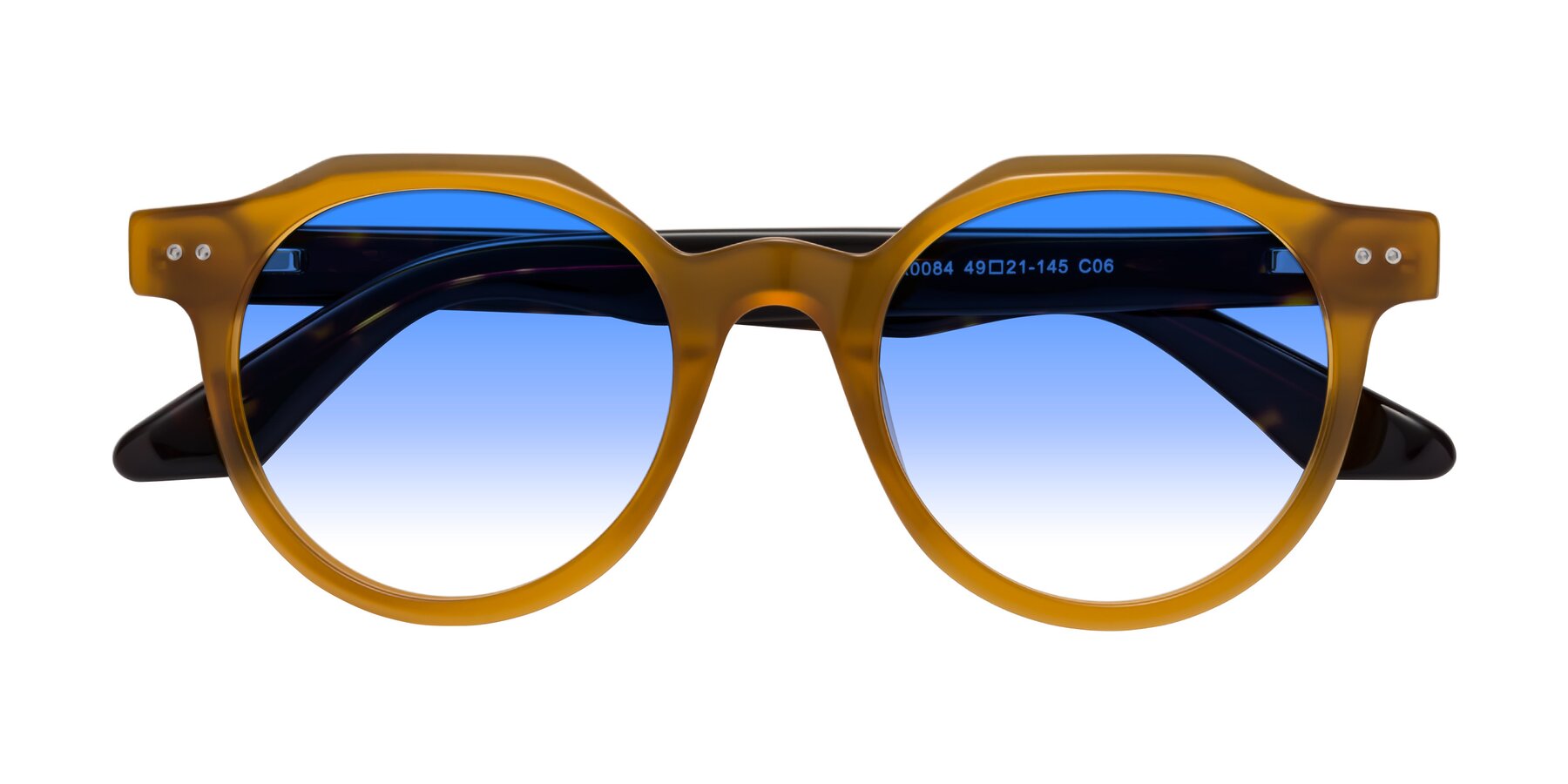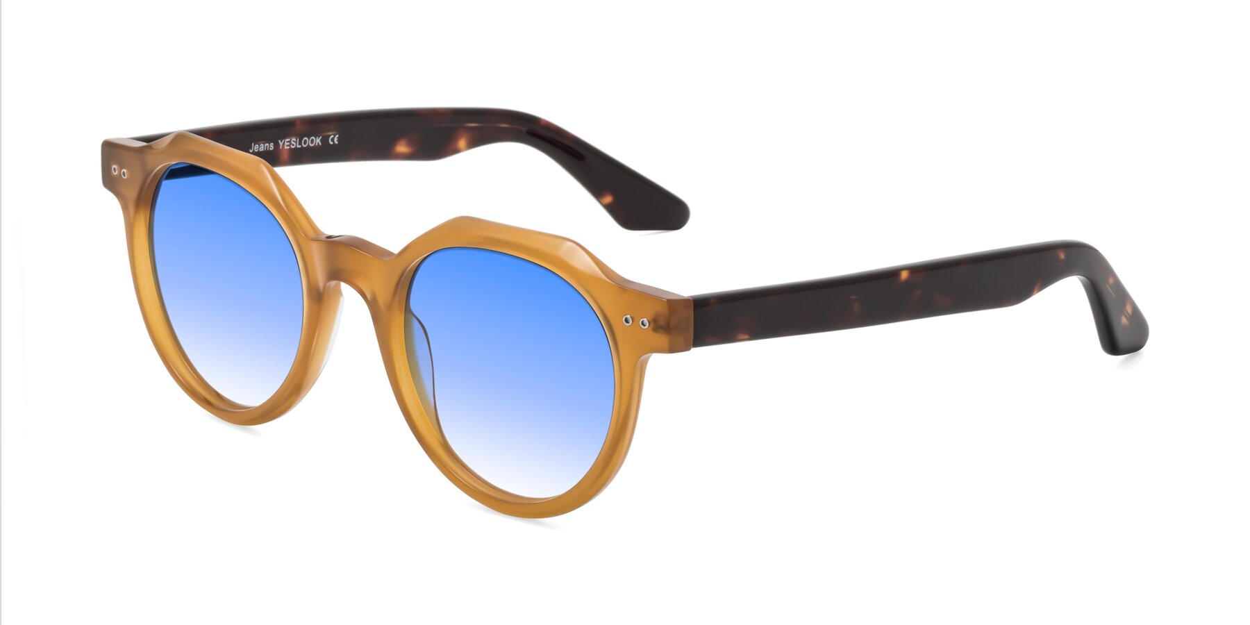 Honey/Tortoise Retro-Vintage Acetate Geometric Gradient Sunglasses with Blue Sunwear Lenses