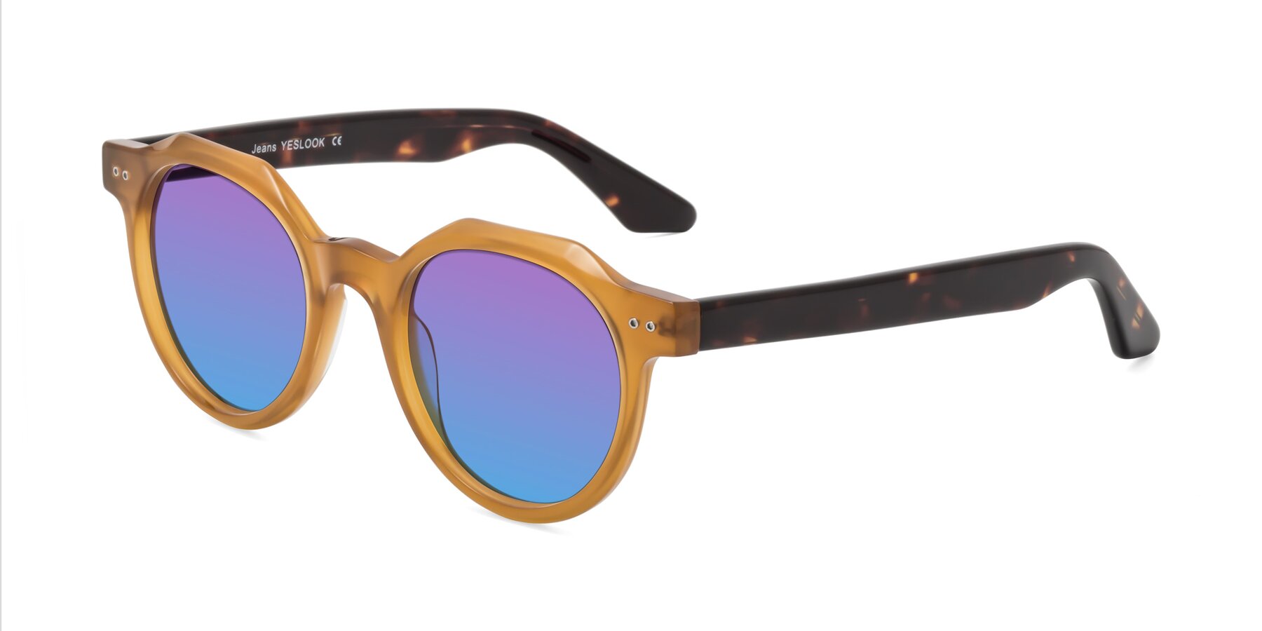 Honey/Tortoise Retro-Vintage Acetate Geometric Gradient Sunglasses with Purple / Blue Sunwear Lenses