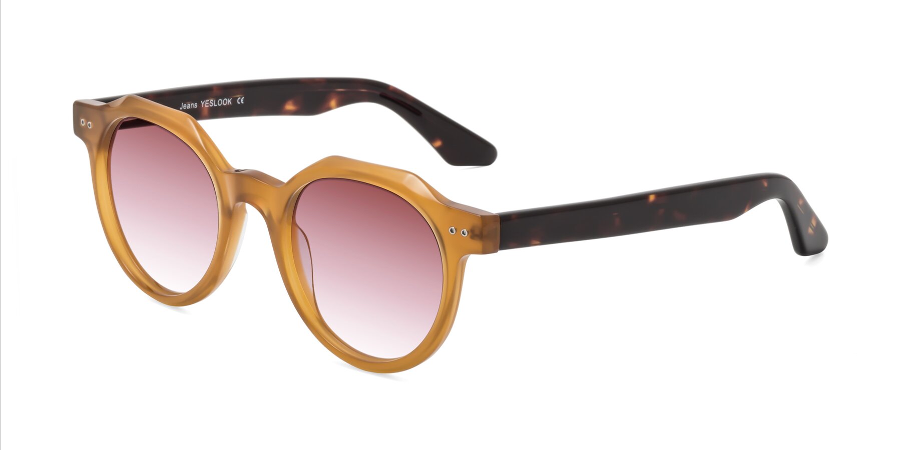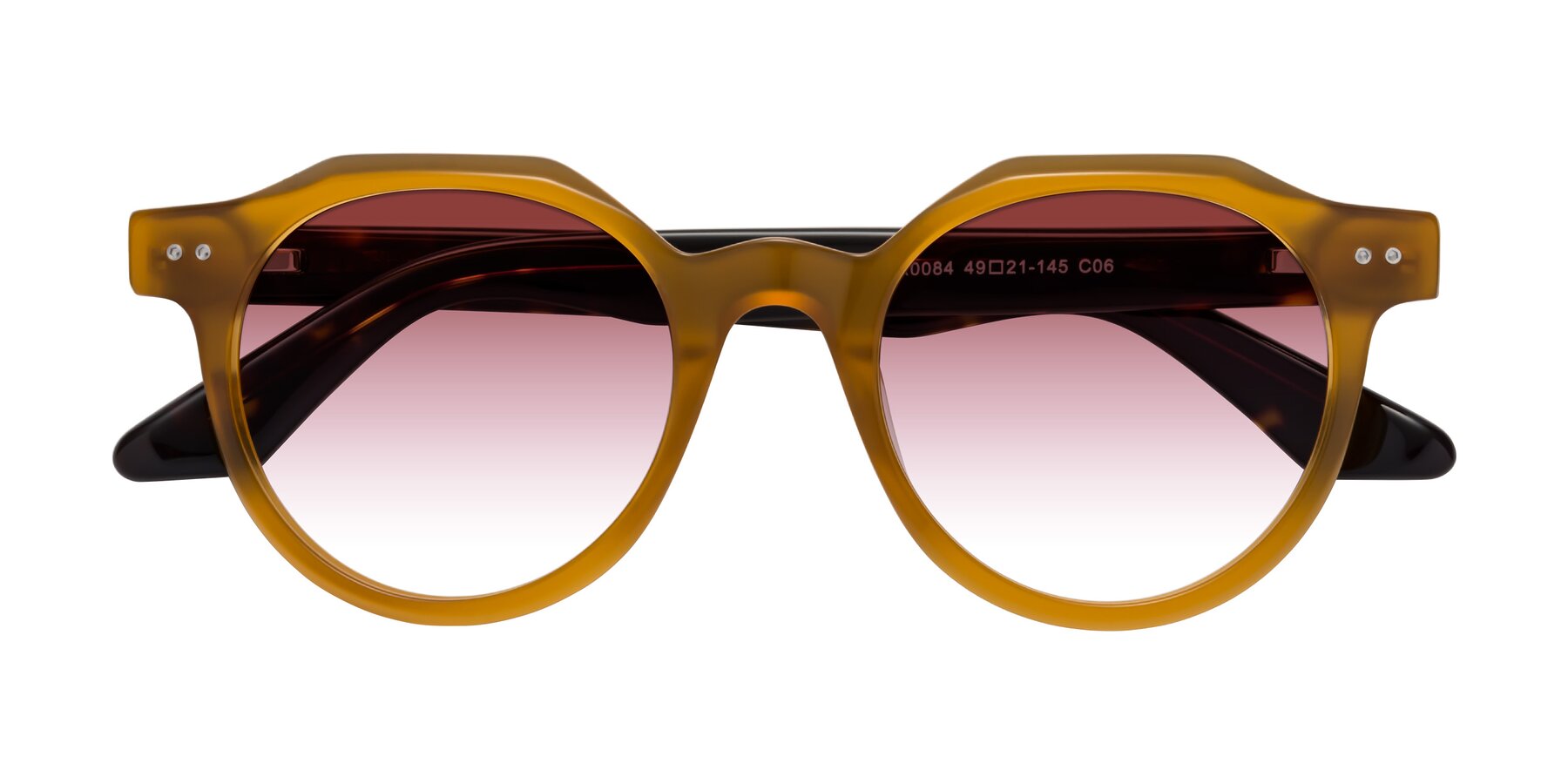 Honey/Tortoise Retro-Vintage Acetate Geometric Gradient Sunglasses with Garnet Sunwear Lenses