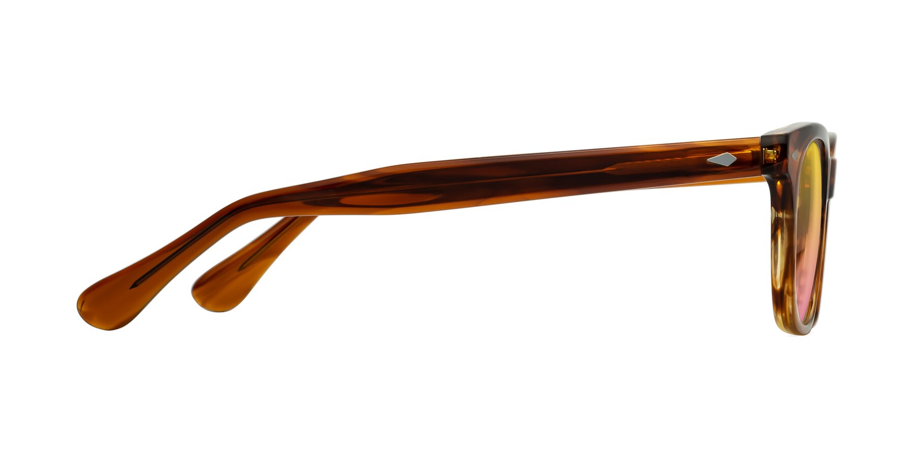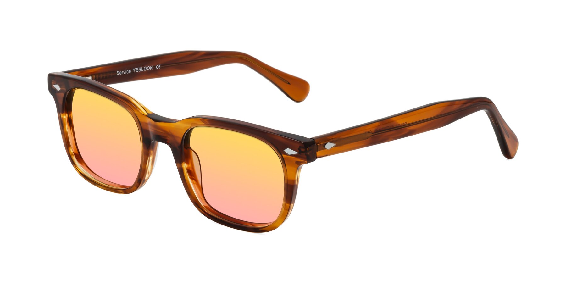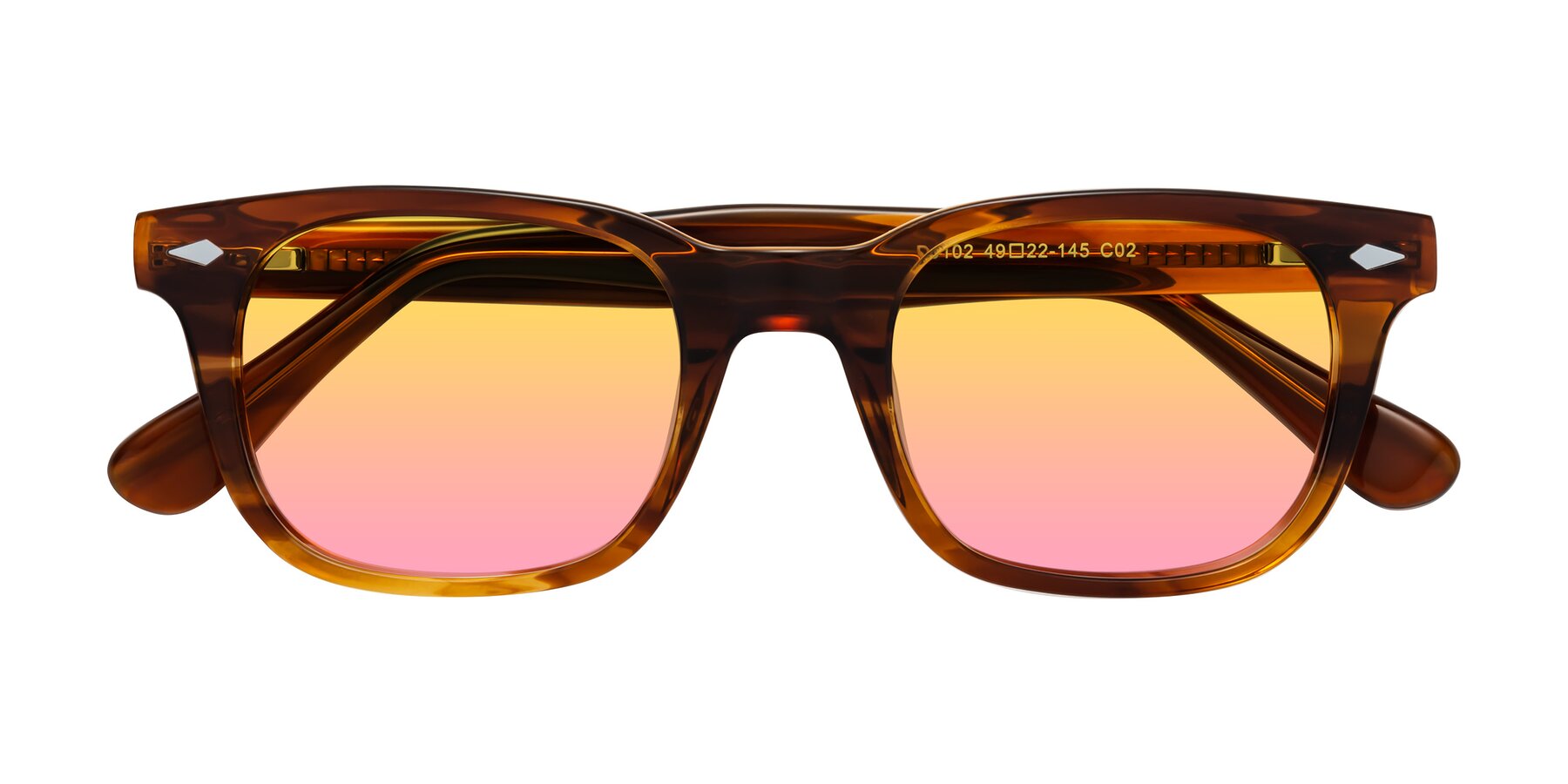 Cola Brown Striped Classic Acetate Rectangle Gradient Sunglasses with Yellow / Pink Sunwear Lenses