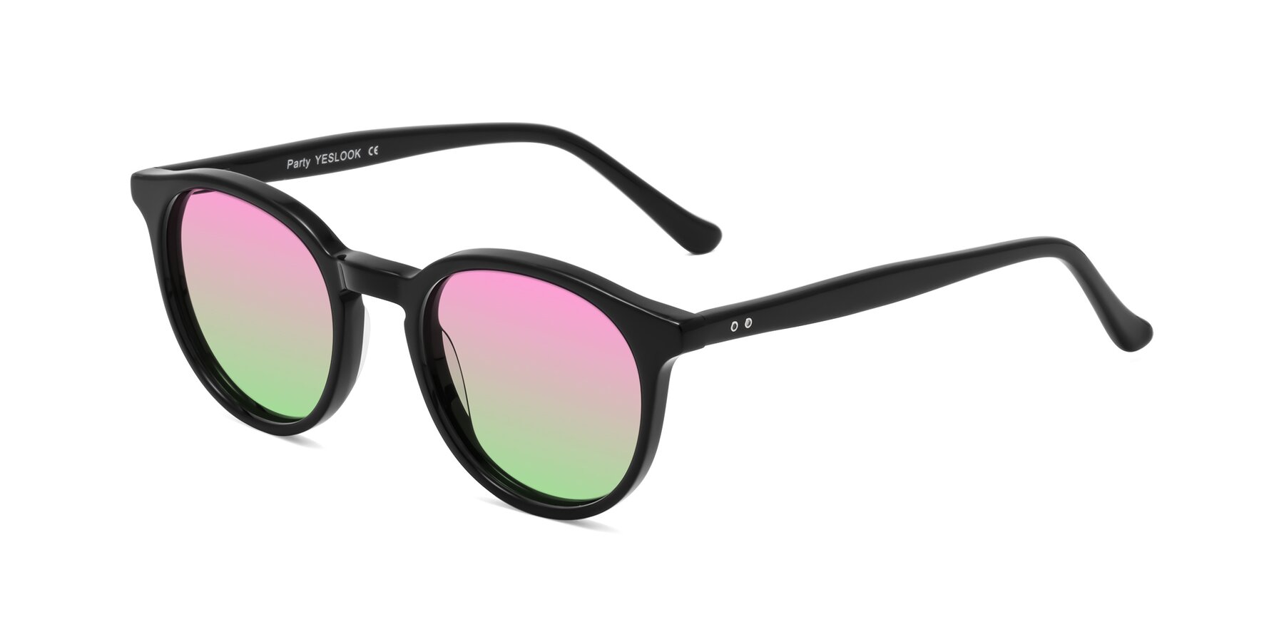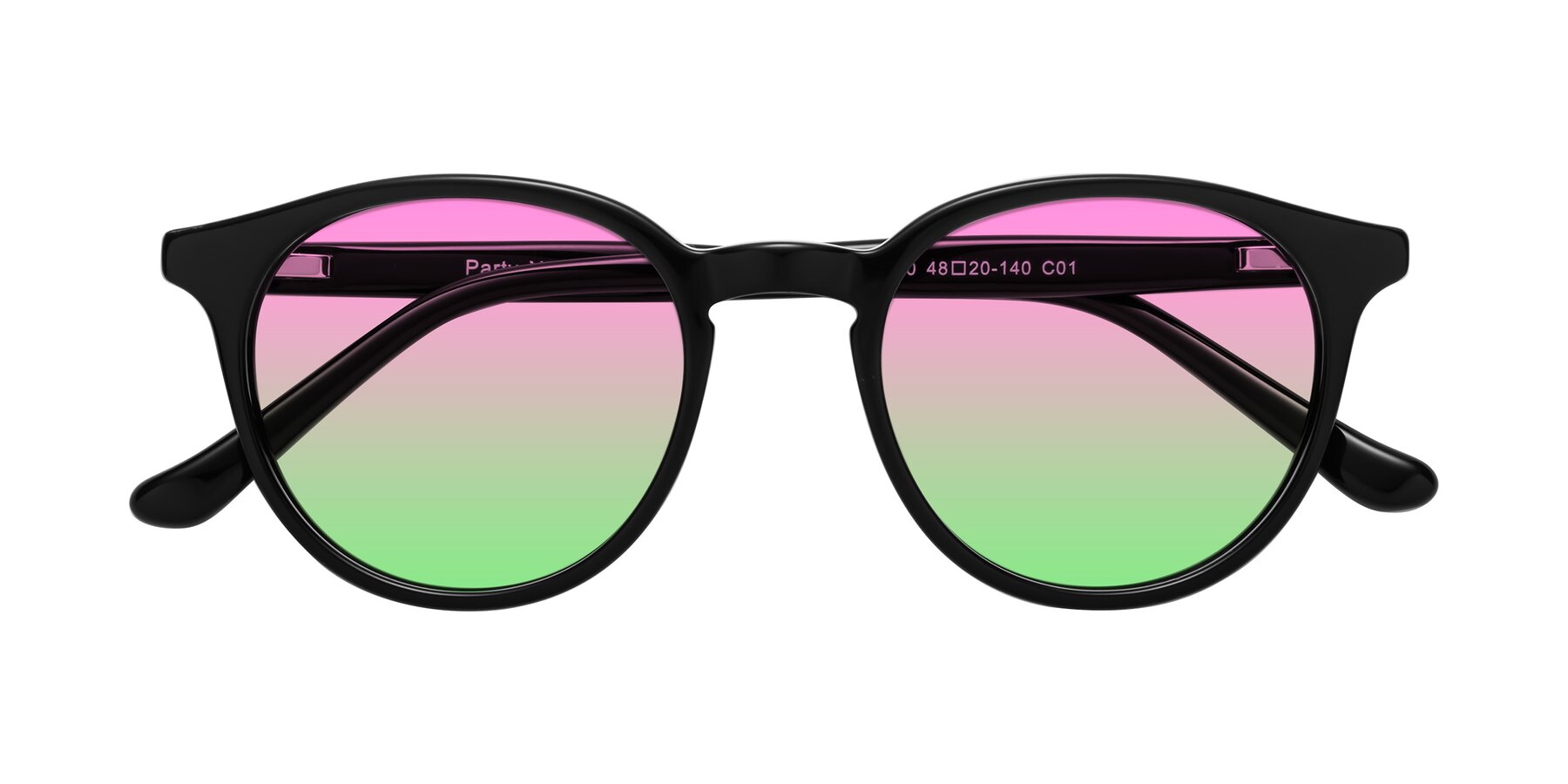 Black Keyhole Bridge Acetate Round Gradient Sunglasses with Pink / Green Sunwear Lenses
