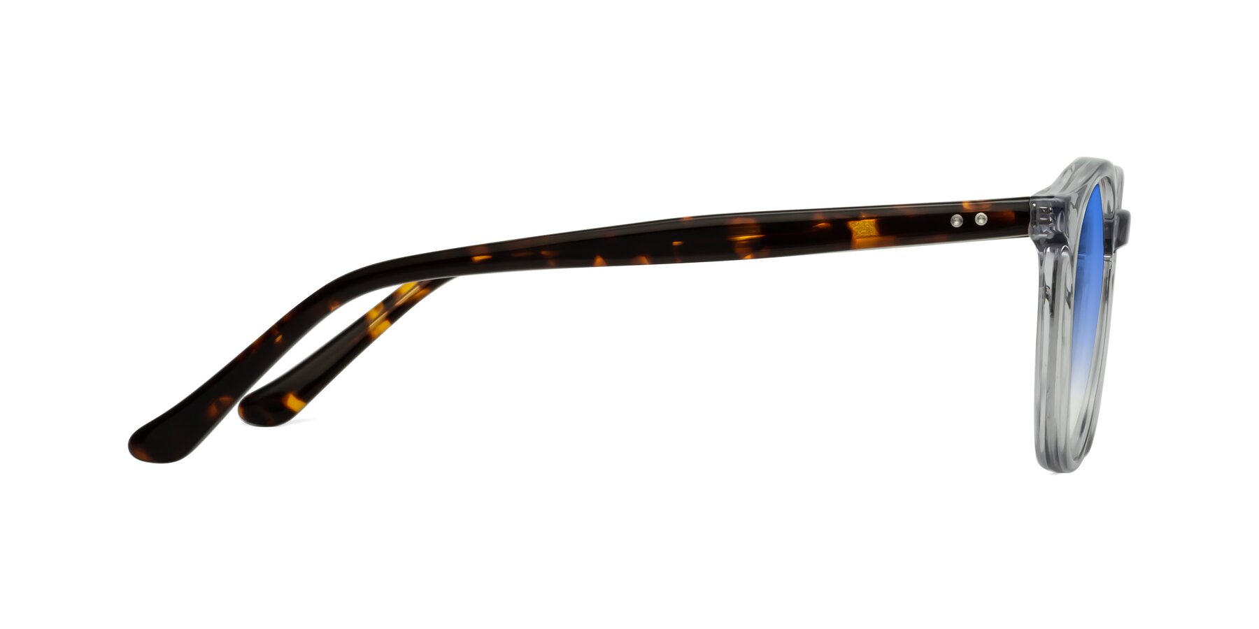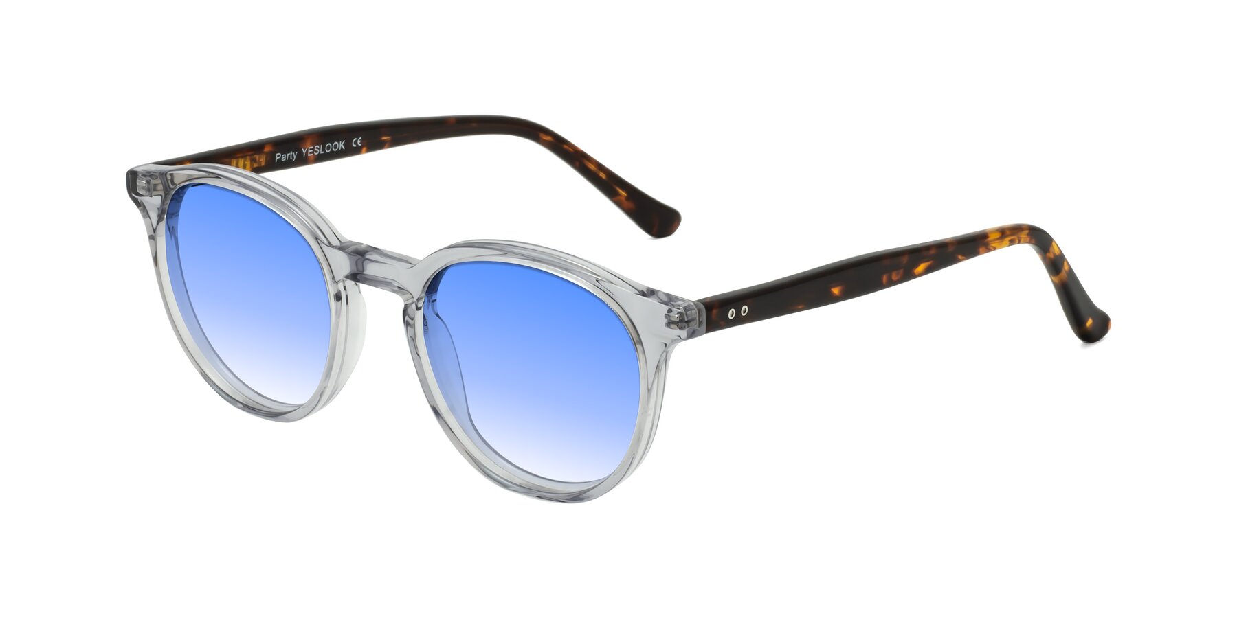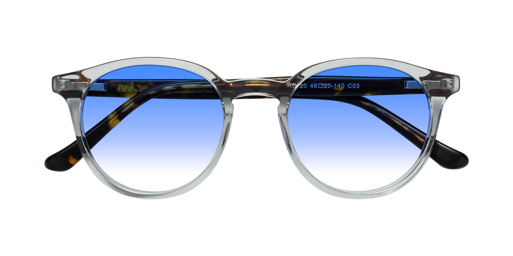 Clear Gray/Tortoise Keyhole Bridge Acetate Round Gradient Sunglasses with Blue Sunwear Lenses