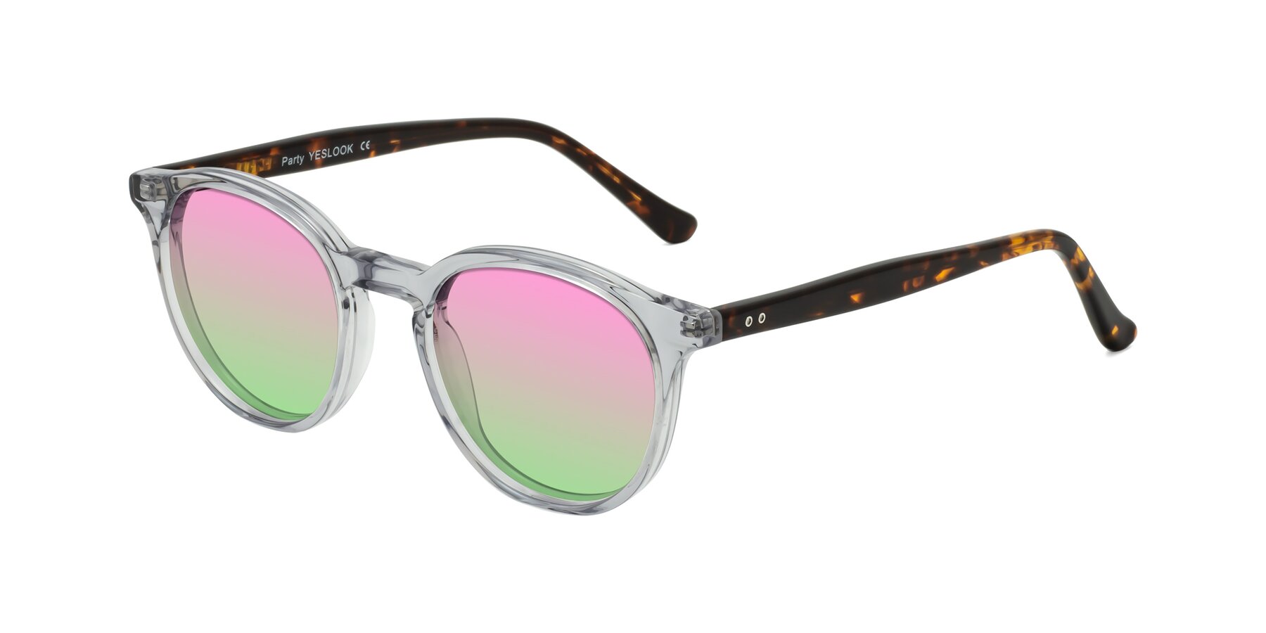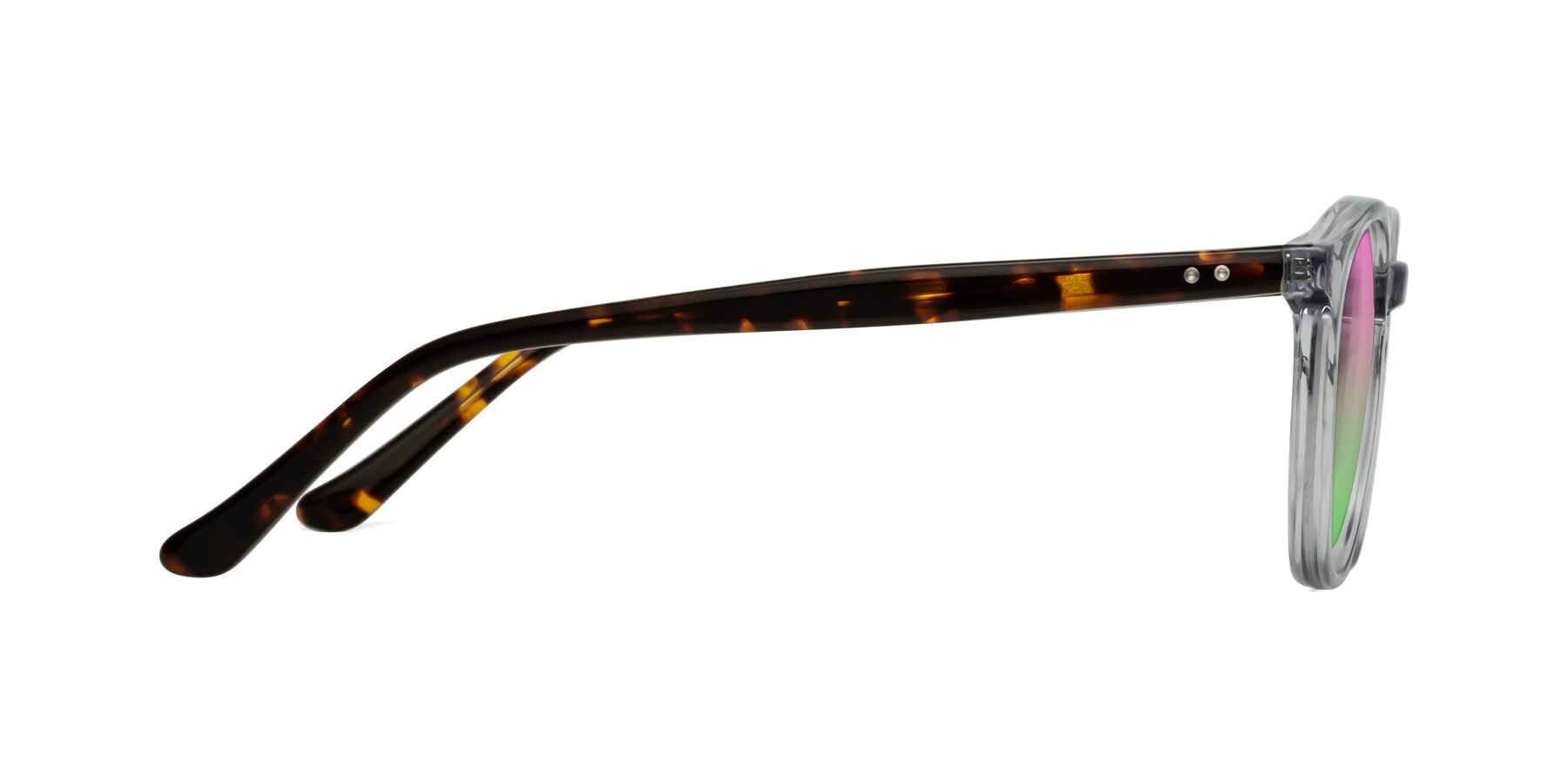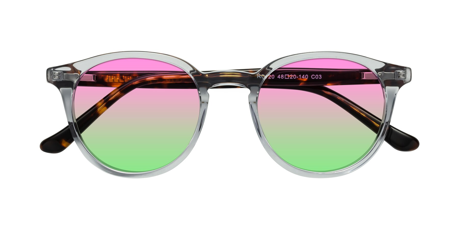 Clear Gray/Tortoise Keyhole Bridge Acetate Round Gradient Sunglasses with Pink / Green Sunwear Lenses