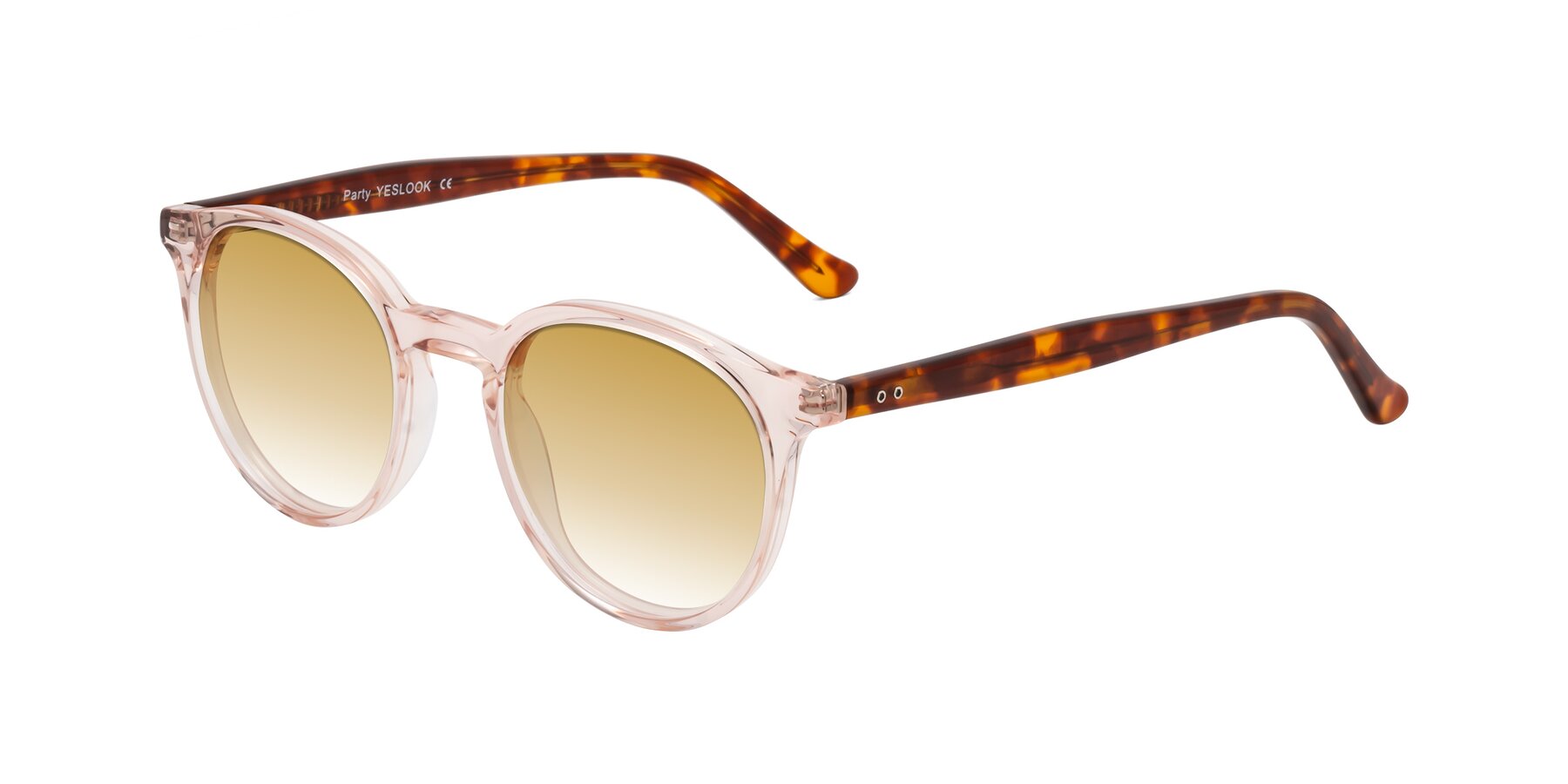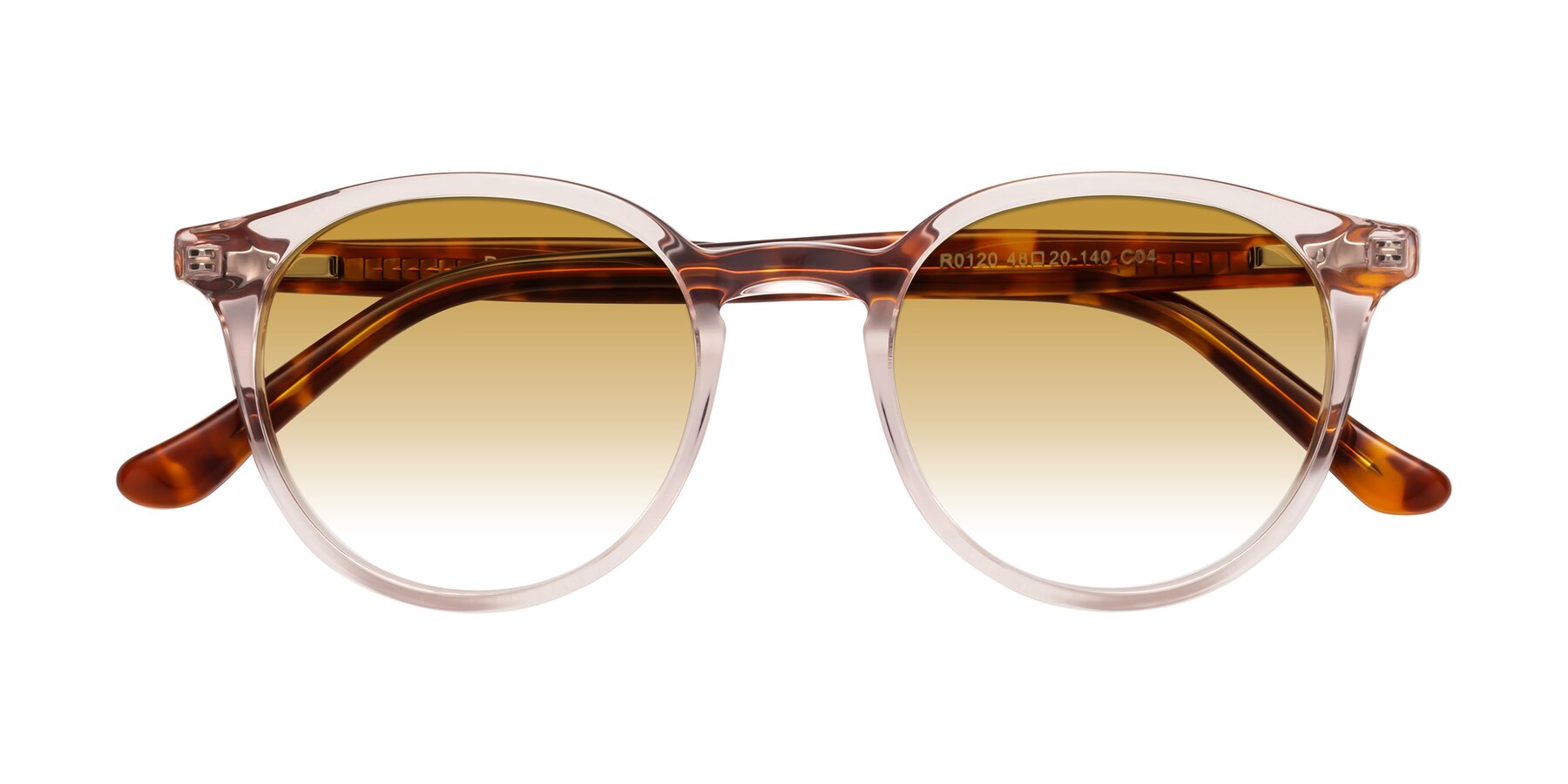 Clear Pink/Tortoise Keyhole Bridge Acetate Round Gradient Sunglasses with Champagne Sunwear Lenses