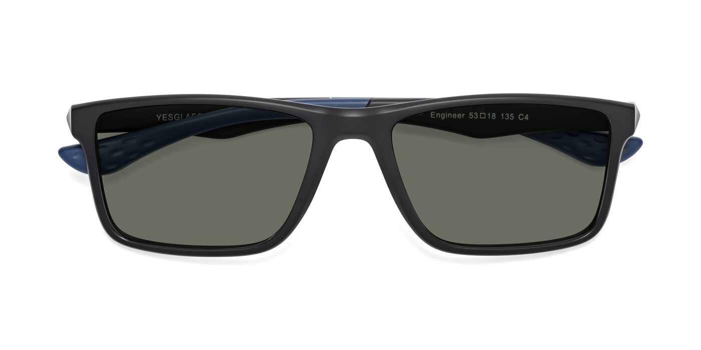 Black Classic Acetate Rectangle Polarized Sunglasses with Green Sunwear Lenses