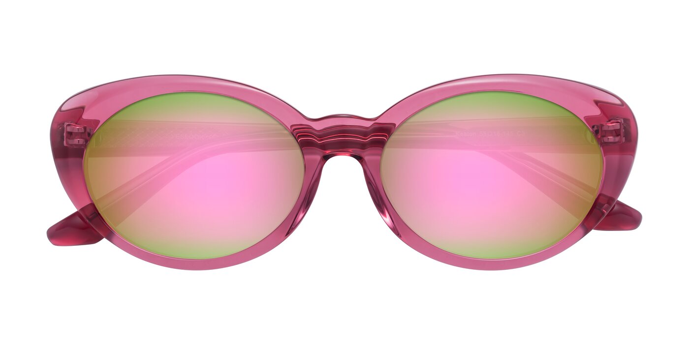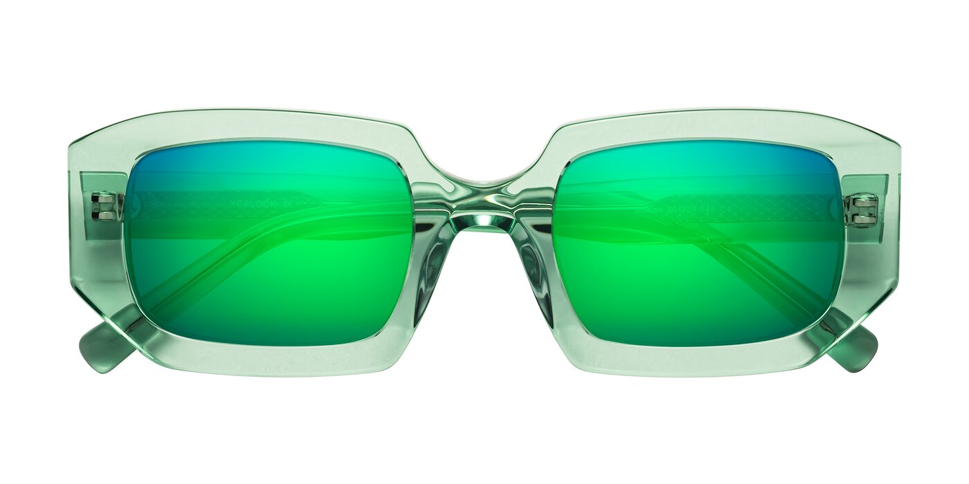 We carry mirrored sunglasses for men and women, in a variety of popular color choices including silver, green, blue, pink, and gold. Mirrored lenses look great in trapezoid-shaped style, aviator, cat-eye, and any other large frames that allow the lens to speak for itself.