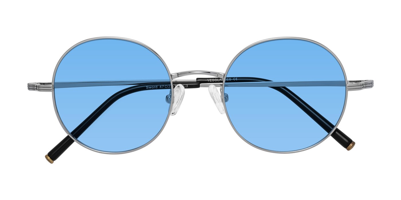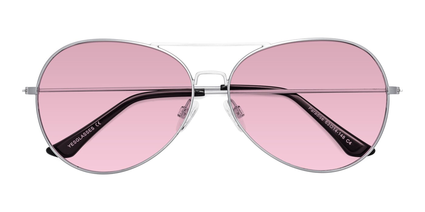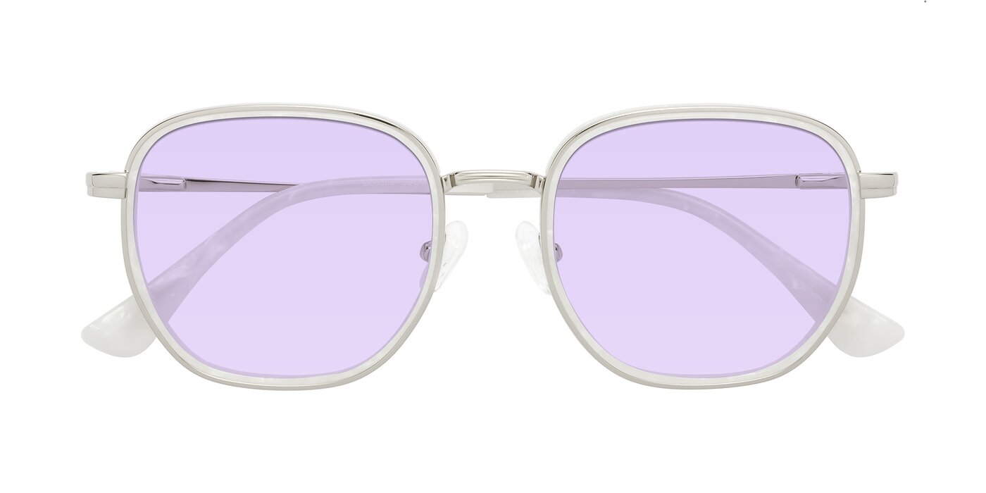 - Tinted lenses and gradient lenses are popular for their ability to be worn indoors, along with the beautiful array of colors and tones available. Aside from fashion, tinted glasses are known to help with light sensitivity and migraines. Cool tones like gray, blue, green, and purple are all popular pairing with silver frames.