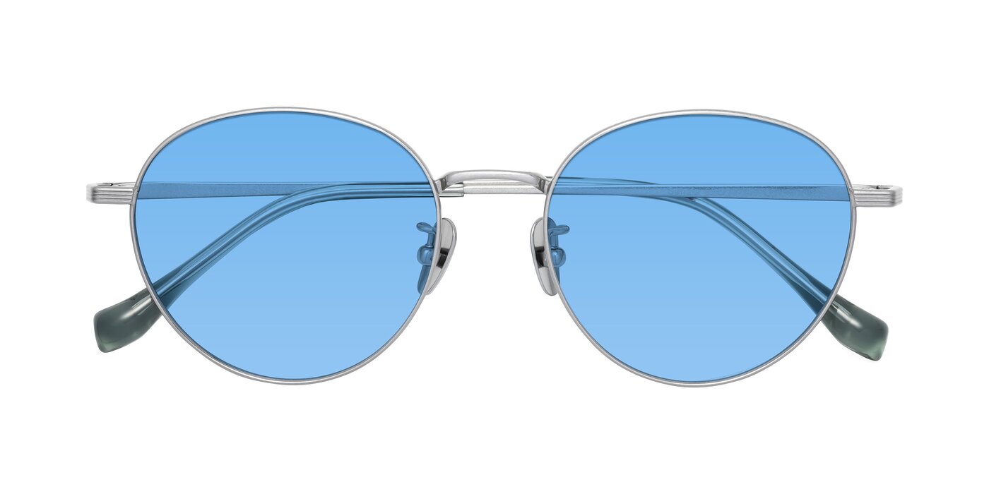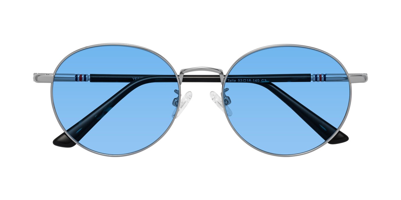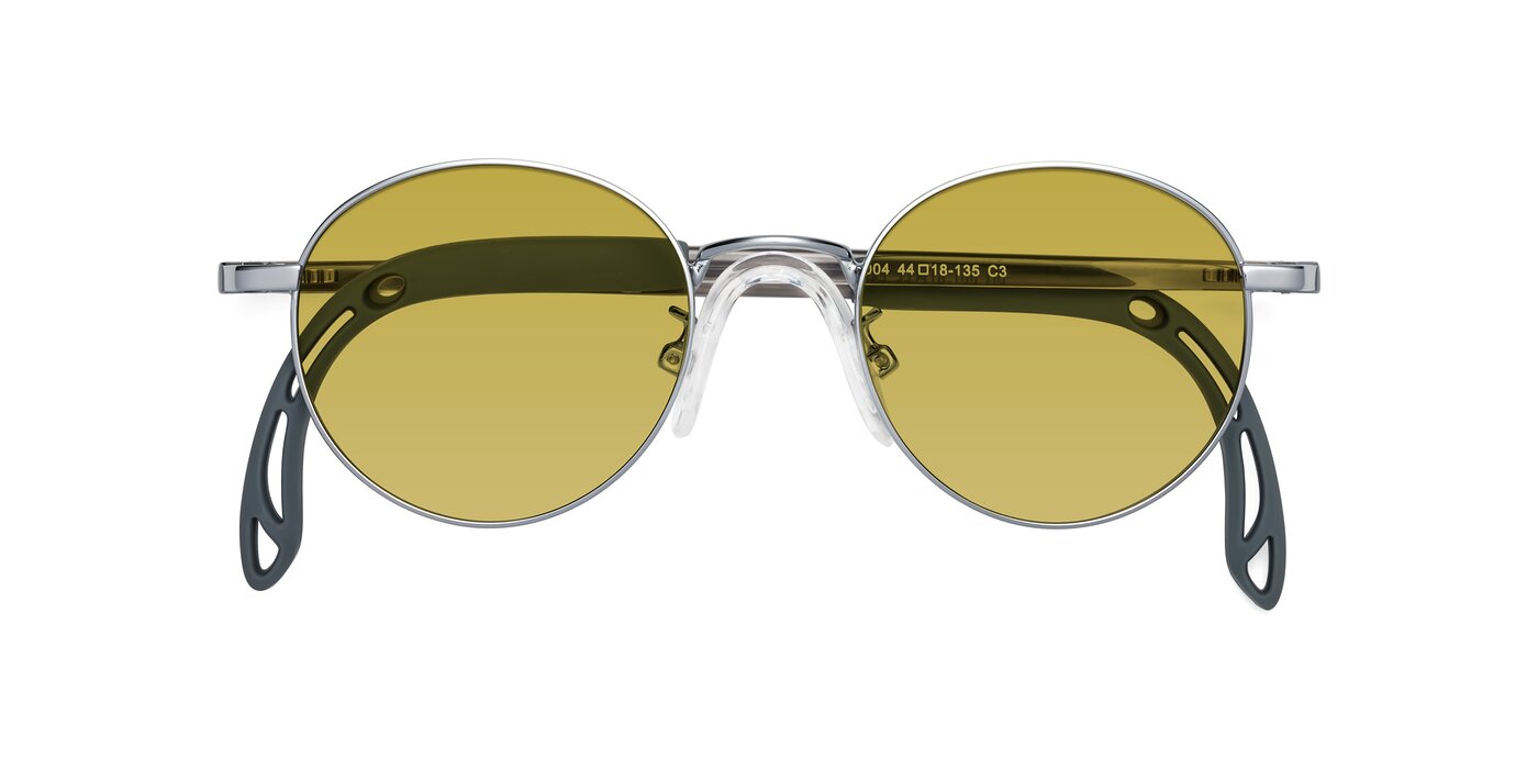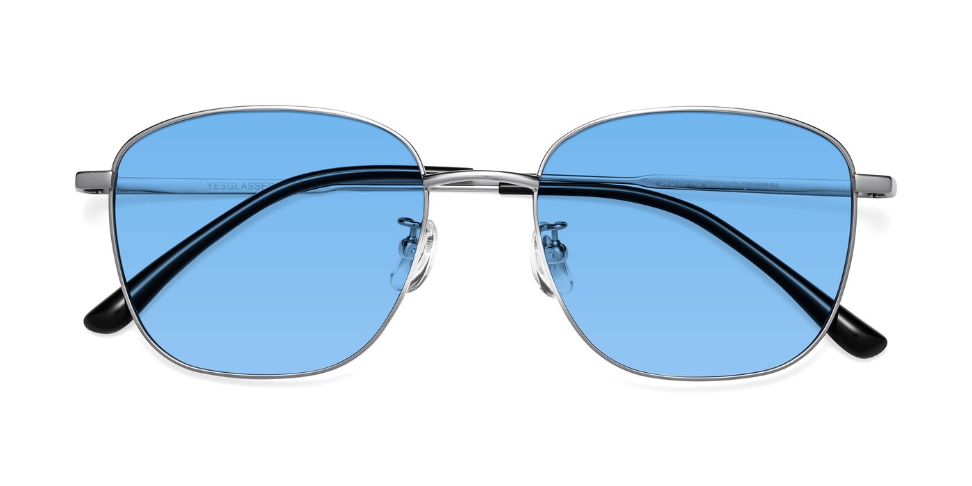 - Tinted lenses and gradient lenses are popular for their ability to be worn indoors, along with the beautiful array of colors and tones available. Aside from fashion, tinted glasses are known to help with light sensitivity and migraines. Cool tones like gray, blue, green, and purple are all popular pairing with silver frames.